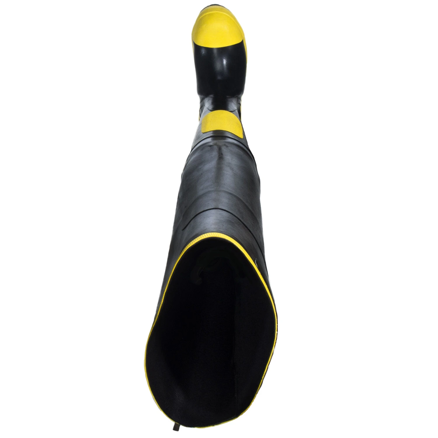 There are five layers in these steel toe insulated boots. Starting on the inside these Black Diamond fire fighter boots are lined with either canvas or felt, then there’s a layer of filling, then foam rubber insulation, then more filling, and then they’re encased in rubber. In the 32 inches of safety toe boots you’ll find two different zones: the lower part that surrounds your foot and the upper that covers your leg, both mean to keep you protected and safe. The uppers of these insulated boots are lined with canvas and the lower parts are lined with felt.