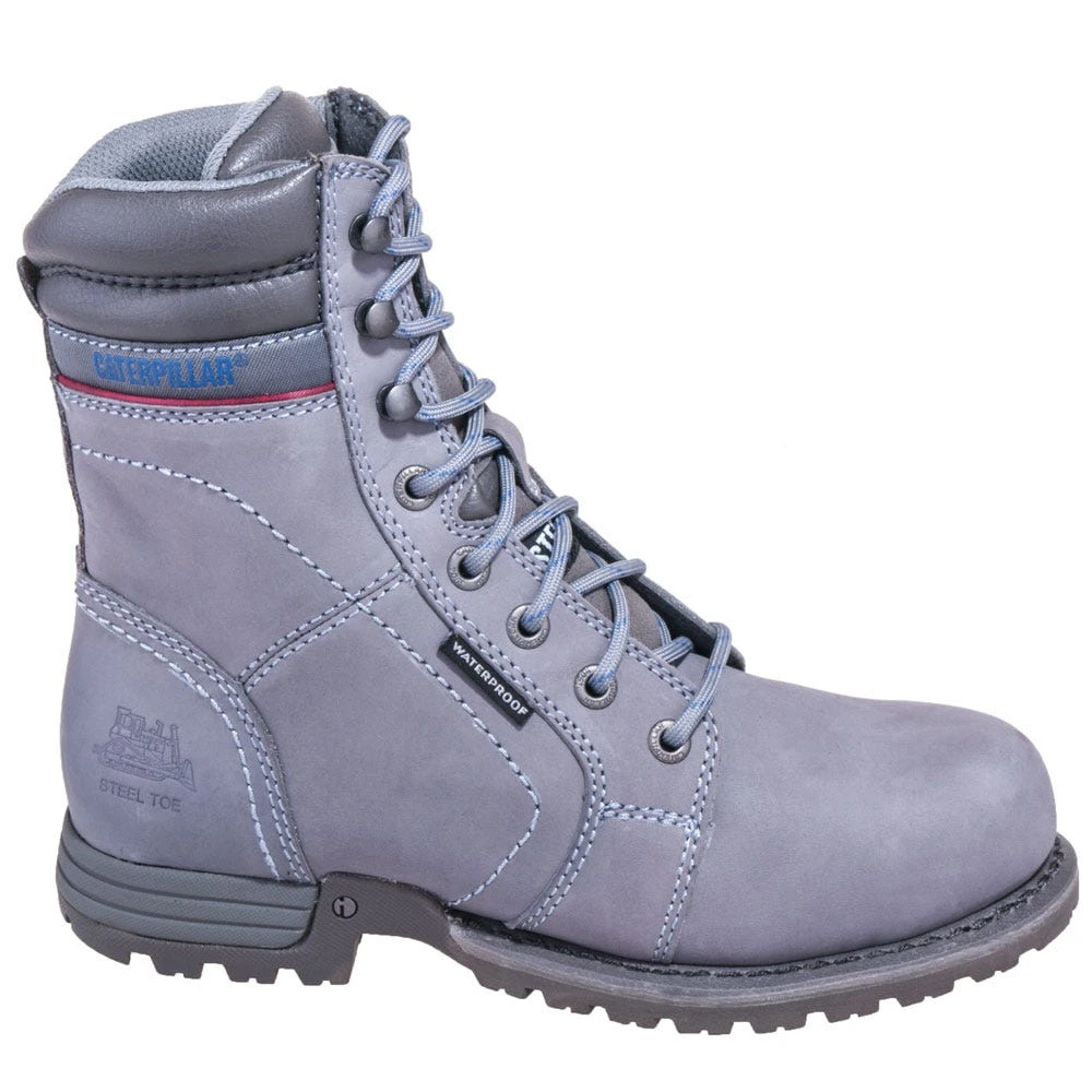 These Caterpillar Women’s 90565 Steel Toe Waterproof Grey Echo Slip-Resistant EH Boots are loaded with the safety features you really need to stay guarded all day at work. Order these from Working Person’s Store today to make sure you have the best protection possible for your toes and feet.