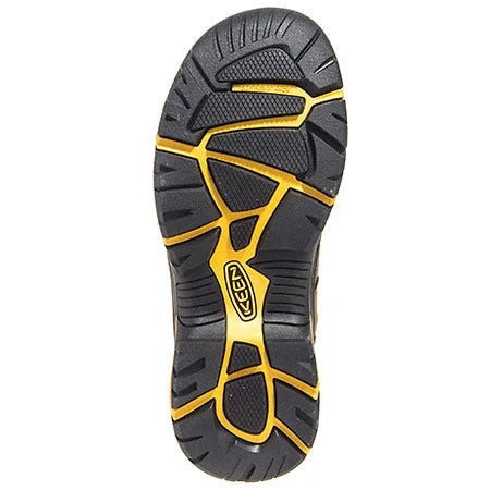 Next, this men’s footwear is manufactured from waterproof nubuck leather, so they’re extra tough and they’ll keep your feet extra dry. Extra dry? Yes, because these brown boots also have KEEN Utility’s very own dry waterproof, breathable membrane (KEEN.Dry membranes). So your leather stays in great shape, which is perfect for handling a long, hard working life. In addition these premium shoes are lined with hydrophobic/hydrophilic two zone comfort technology, too, so even on the insides, there’s more insurance against getting wet. And comfort is another important ingredient in what is a great pair of steel toe boots to own.