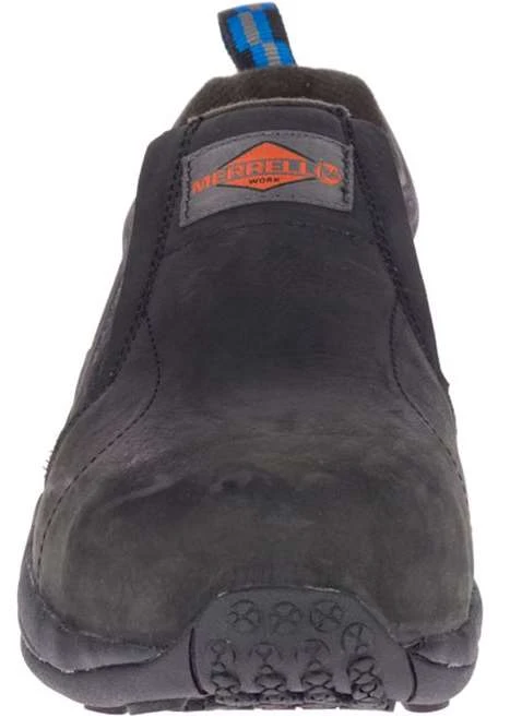 Upgrade to these impressive Merrell Men’s J099317 Black Jungle Moc Composite Toe Slip Resistant Slip On Work Shoes today! Order your pair right now at Working Person’s Store to get the high-quality toe safety, slip resistance, cushioning, and more that your feet truly deserve.