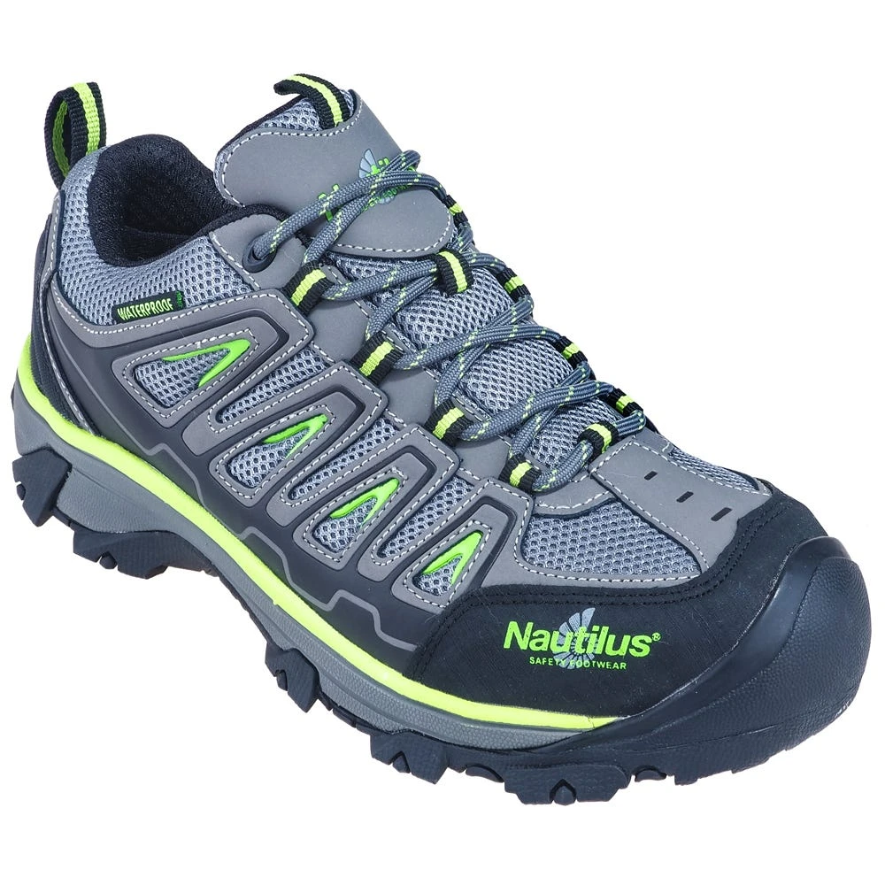 Stop suffocating your feet during the work day – they need to breathe! Get them situated in these ~Nautilus Men’s N2208 Grey Lime Green EH Waterproof Steel Toe Athletic Work Shoes, and they’ll not only have a waterproof construction, but they’ll also get to hang out in the breathable, waterproof membranes all day.