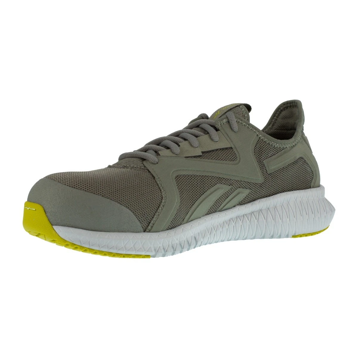 Once you add a pair of these ~Reebok Men’s RB4063 Lime Grey Flexagon 3.0 Composite Toe EH Athletic Work Shoes to your Working Person’s Store online shopping cart, you can breathe a sigh of relief. Why’s that? It’s because this special Flexagon 3.0 athletic footwear has more than meets the eye. For starters, you can expect high-quality safety toe protection from the composite safety toe caps, and the overall design is metal-free to keep things lightweight while still being protective.