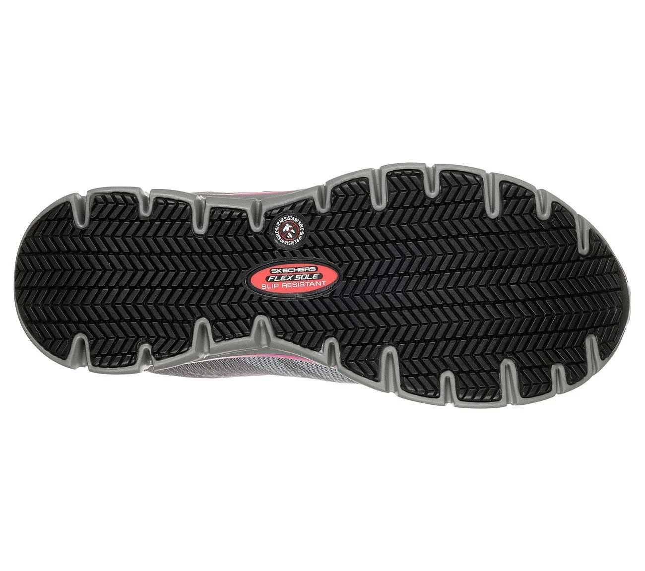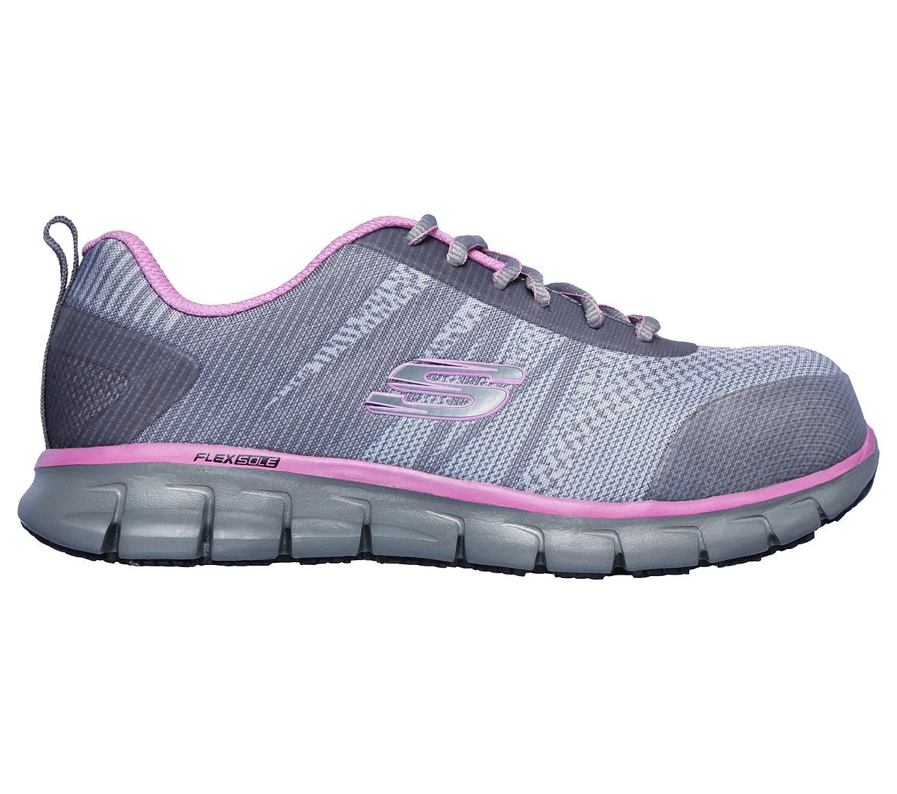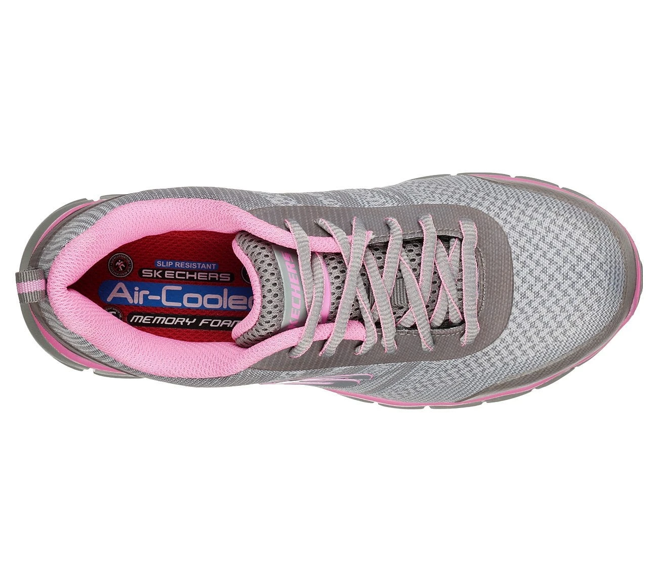 Are you ready to blow your own mind? You’re the one who landed on this page, so you must’ve known what you were searching for! These ~Skechers Women’s 77250 GYPK Grey Pink Sure Track- Saquenay Alloy Toe Athletic Shoes are constructed with alloy safety toe caps to guard your toes against impact and compression, and they’re equipped with superior comfort and style to boot. Your feet are already thrilled that you’ve ended up checking out our Working Person’s Store site, so feel free to satisfy your workplace footwear needs with these Skechers athletic shoes.