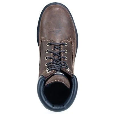 Full-grain brown leather uppers give these soft toe boots the necessary durability and long wear needed for challenging working conditions- indoors and out. The premium, oiled leather is completely waterproof to keep you dry and protected even in nasty weather. The leather is also seam-sealed for increased durability and dry feet. These brown boots were made using direct-inject construction for durability.