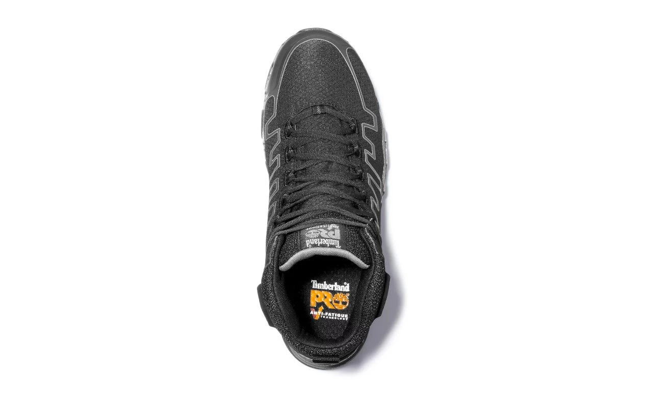 The dual-density polyurethane outsoles are oil-resistant per SATRA TM63, abrasion-resistant, and heat-resistant up to 248 degrees Fahrenheit to help you tackle hot surfaces. Timberland also built anti-fatigue technology right into the rugged outsoles to give your feet the ultimate comfort and safety. These men’s PowerTrain athletic shoes feature alloy safety toe caps to provide your toes with lightweight protection that shields them against rolling and falling objects at the job site. This alloy toe black footwear is also electrical hazard rated to guard you around live open circuits under certain dry conditions, thanks to the single-density polyurethane midsoles.